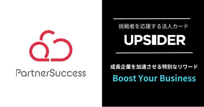 売れる代理店を増やすPRM(※1)-代理店連携管理クラウド「PartnerSuccess」を開発運営するパートナーサクセス株式会社(本社:東京都渋谷区、代表取締役 永田雅裕、以下「パートナーサクセス」)は、株式会社UPSIDER(本社:東京都港区、代表取締役:宮城徹・水野智規)が提供する法人カード「UPSIDER」において、利用企業様向け優待プログラム「Boost Your Business」への優待プログラムの提供を開始しました。