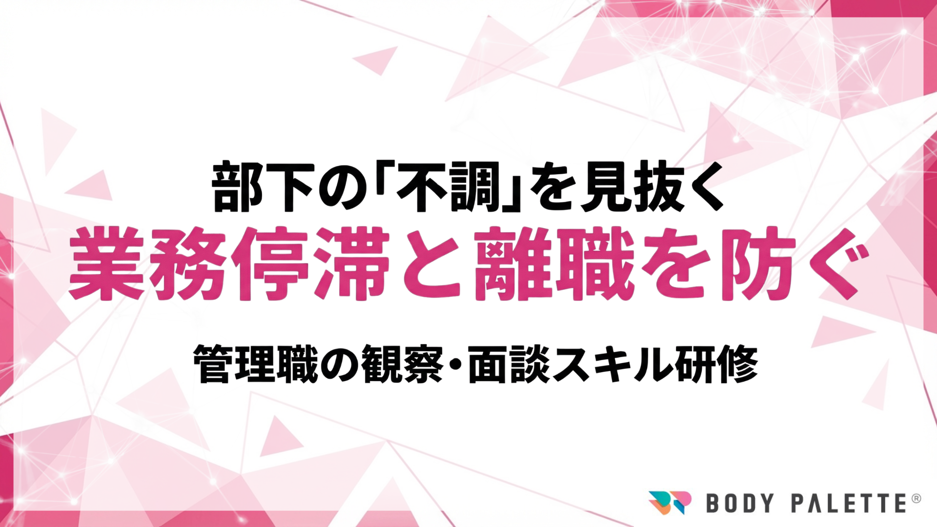 管理職が部下の不調兆候を観察と1on1で早期把握し、負荷調整と連携導線で悪化前に対応できる状態を標準化する研修・実装支援です。