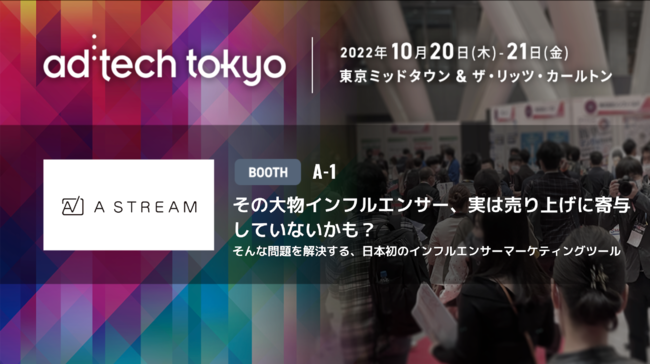 この度、10/20(木)~10/21(金)六本木ミッドタウン&ザ・リッツ・カールトン東京にて開催されるアジア最大級のマーケティングカンファレンス「アドテック東京2022」にてブースの出展をいたします。