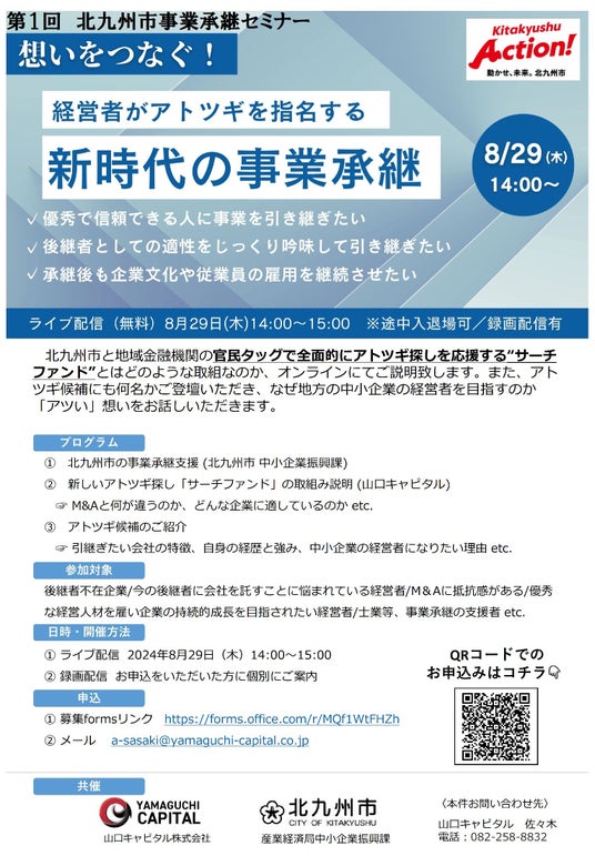第1回 北九州市事業承継セミナー ~想いをつなぐ!経営者がアトツギを指名する『新時代の事業承継』~