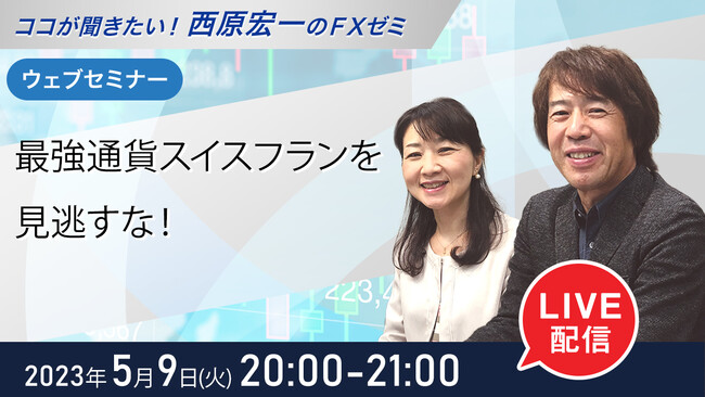 セントラル短資FX株式会社(本社:東京都中央区、代表取締役社長:松田 邦夫)は、2023年5月9日(火)20時から無料ウェブセミナー『最強通貨スイスフランを見逃すな!』(ココが聞きたい!西原宏一のFXゼミ)を開催します。