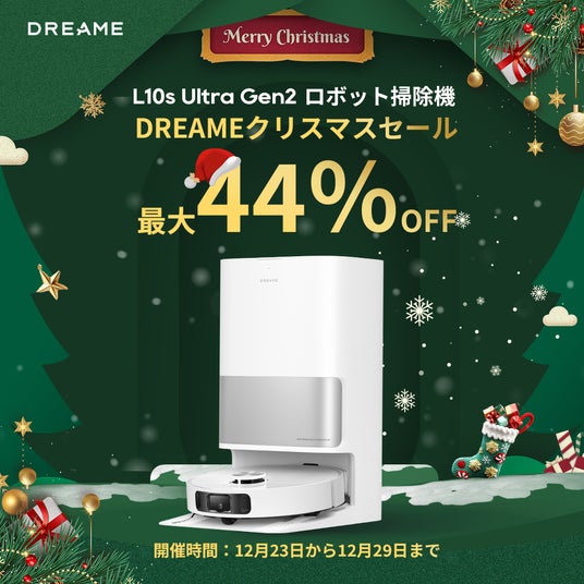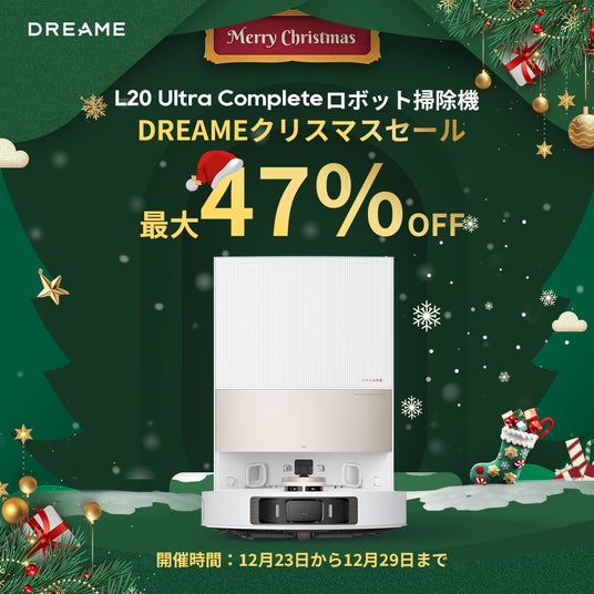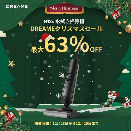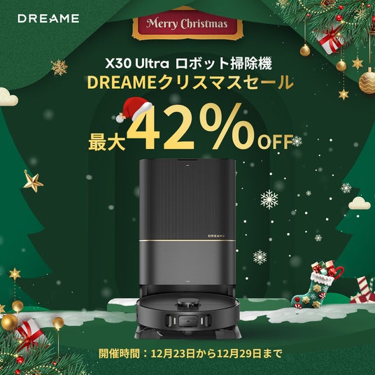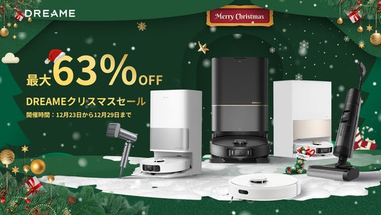 Dreameでは、クリスマスシーズンに合わせて、Dreame L20 Ultra Complete、D9 Max Gen 2、L10s Ultra Gen 2、X30 Ultra、DreamePocket ドライヤー、H12S 水拭き掃除機など、人気商品6モデルが最大63%OFFの期間限定ビッグセールを実施いたします。