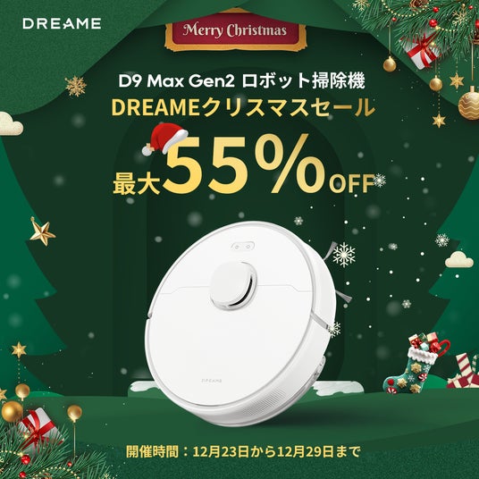 高速デジタルモーター性能世界トップクラス、急成長を遂げるスマート家電の総合メーカーDreame Technologyの日本支社であるドリーミーテクノロジージャパン株式会社(東京都中央区)は、「クリスマスセール※」期間を含む12月23日(月)00:00~12月29日(日)23:59の期間、Amazonで開催されます。