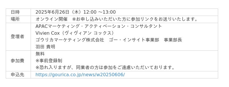 「人に寄りそう合理化で、世界をもっと自由に、もっとゆたかに。」をビジョンに掲げるゴウリカマーケティング株式会社(本社:東京都渋谷区、代表取締役:岡本 賢祐)は、6月26日(木)に「アジア市場の可能性を探る、リテールトレンドと参入戦略」をテーマにウェビナーを実施いたします。昨年から全6回にわたりお届けしてきた本シリーズ最終章は、インド編となります。みなさまぜひお見逃しなく!お申込はこちらアジア市場は急速な成長と多様化が進む中、多くの企業にとって重要な拡大先となっています。本ウェビナーでは、アジア地域全体の小売市場の現状を俯瞰するとともに、今回はインド市場のケーススタディを交え、規模やトレンド、今後の展望についてわかりやすく解説してまいります。