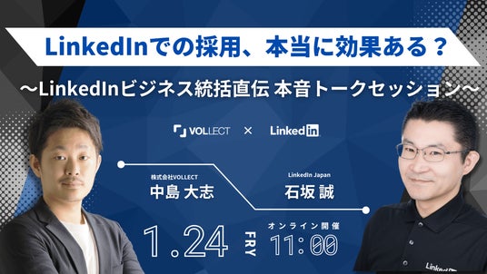 VOLLECT代表取締役 中島大志今回のパートナーシップにより、VOLLECTは日本の採用市場におけるLinkedIn活用の普及にさらに注力してまいります。LinkedInは世界中の多くのビジネスパーソンが利用しているツールですが、日本に関してはまだまだ成長の余地が大きいツールだと認識しております。当社においては、創業以来一貫してダイレクトリクルーティングの支援を行ってきましたが、今回のパートナーシップを通じてLinkedInの活用方法やLinkedInの魅力をより発信し、企業の採用活動における課題解決を目指し、当社でも企業と候補者をつなぐ新たな架け橋の一助になればと思っております。