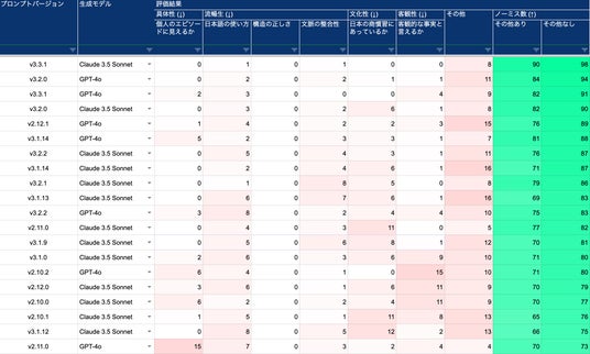 実際の評価AIによる評価結果サンプルは以下の表2になります。多様なプロンプトとモデルの組み合わせで生成された大量の自己PR草案をAIが評価し、高品質な草案のみを取り出すことに成功しています。百万以上の草案を作り、かつそれを評価することは人手では不可能なため、生成AIの活用により得られた成果と言えます。