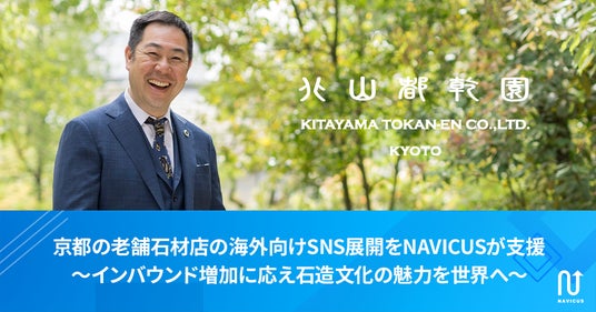 ▼北山都乾園 (代表取締役)北山 利通氏のコメント海外への発信を考えている中で、不得意なデジタル分野をカバーしてくれるNAVICUSと出会い、海外に向けたInstagram・Web施策のサポートをしてもらっています。海外向けの情報発信やデジタル分野に関するノウハウがない中、北山都乾園に寄り添った形で尽力いただいています。今後も海外のお客様に北山都乾園の魅力を知っていただき、日本の伝統的な石燈籠に興味を持っていただけるよう、世界への発信にチャレンジしていきたいと思います。