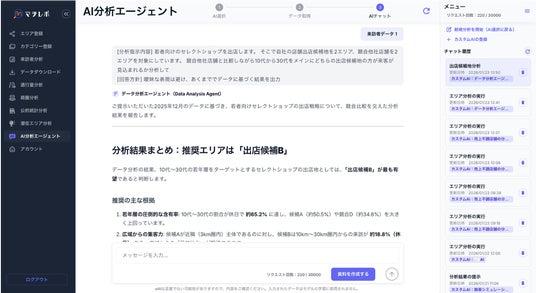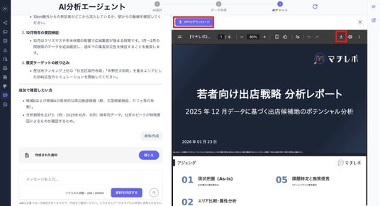 マチレポ」のメジャーアップデートを、2026年1月29日に実施し、来訪者の分析データを基に、チャット形式でAI(人工知能)による分析を行う「AI分析エージェント機能」を新たに搭載しました。