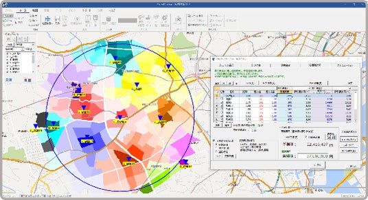 「MarketAnalyzer(R) 5」は、ベッドタウンや居住地エリアの調査に役立つ国勢調査をはじめ、繁華街の調査に役立つ昼間人口や商業統計等、幅広いデータを搭載しており、地図上に人口、世帯、消費、年収等の統計データを重ね、店舗商圏のマーケットボリュームやターゲット分布を瞬時に把握することができるといった特長があります。