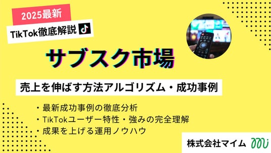 株式会社マイム(本社:東京都品川区、代表取締役社長:古川 湧一、以下「当社」)は、サブスク市場の皆様を対象に「2025年版TikTokトレンドレポート」を公開いたしました。本レポートは、TikTokを活用した最先端のプロモーション事例や成功パターン、そして結果に直結する戦略的な運用ノウハウを一冊に集約。