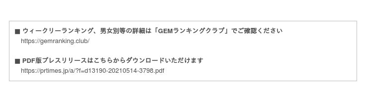 エンタテイメント業界に向けたデータ×デジタルマーケティングサービスを提供するGEM Partners株式会社(ジェムパートナーズ、所在地:東京都港区、代表取締役:梅津文)は5月14日(金)、エンタメコンテンツランキングやデータ情報を発信する「GEMランキングクラブ」プロジェクトにて作成した「定額制動画配信タイトルの視聴者数ランキング」を発表いたします。