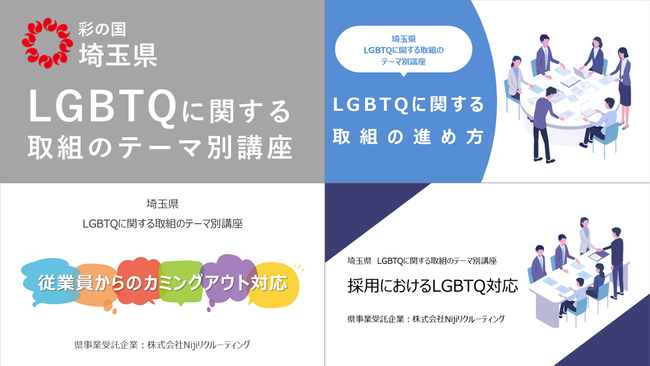 LGBTQのダイバーシティ推進支援及び人材紹介・採用支援を行う、株式会社Niji(にじ)リクルーティング(本社:東京都港区、代表取締役:齋藤敦)は、埼玉県から委託を受け、埼玉県内に活動拠点を有する企業、事業所の担当者を対象とした相談窓口『にじいろ企業相談』を設置いたしました。この事業の一環として、LGBTQに関する取組のテーマ別講座(セミナー)動画)の提供を開始いたしました。