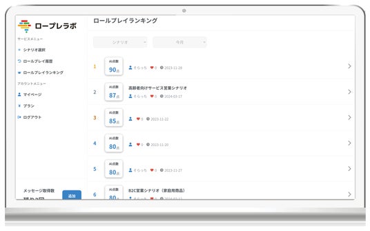 やりとりを100点満点で評価する機能があり、「ロールプレイランキング」では、他の人のロープレを閲覧することができ、上位のやりとりなどを見て学ぶことができます。