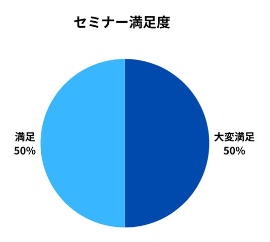 セミナー参加社の満足度は「大変満足」が50%、「満足」50%で、全体として「満足」以上が100%という結果となりました。