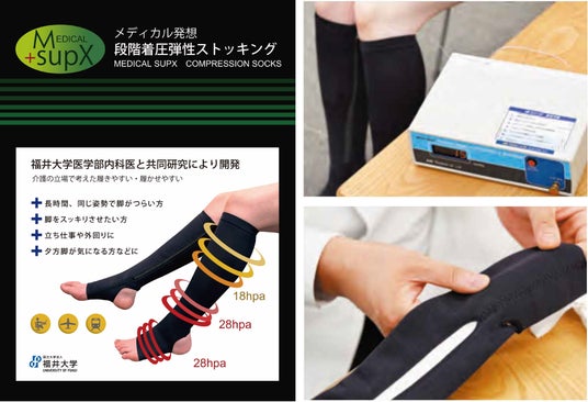 イーゲートは2023年6月医療機器製造業の登録および第三種医療機器製造販売業の許可を取得し、一般医療機器「段階着圧弾性ストッキング」の販売を開始しました。展示会では、この弾性ストッキングをはじめ、予防医療に役立つヘルステック製品を展示します。