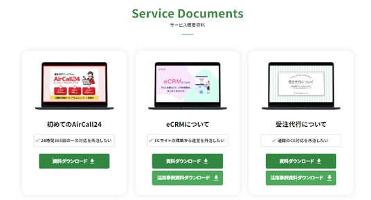 お役立ち資料一覧ページとは、電話代行に関連する各種サービスの強みや、活用事例等をまとめた資料を一覧でご覧いただけるページです。いずれの資料も無料でダウンロード可能ですので、サービスの特徴を知り、比較検討する際にお役立てください。