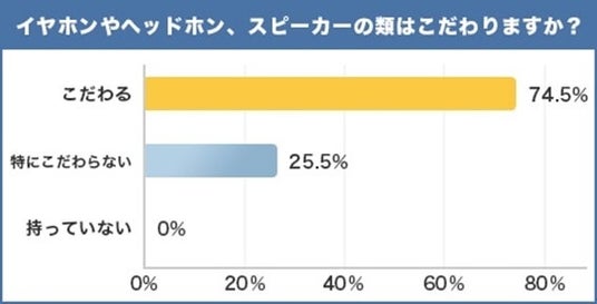 - 約74.5%がイヤホン(ヘッドホン、スピーカー)をこだわる