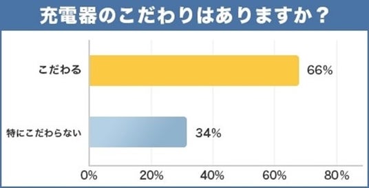 充電器にこだわる人は66%でした。スマートフォンやSwitchなどの携帯機には必ず充電器が付いているので、未所持と回答した人はいない結果となりました。