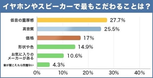 - 約74%がイヤホン(ヘッドホン、スピーカー)をこだわる