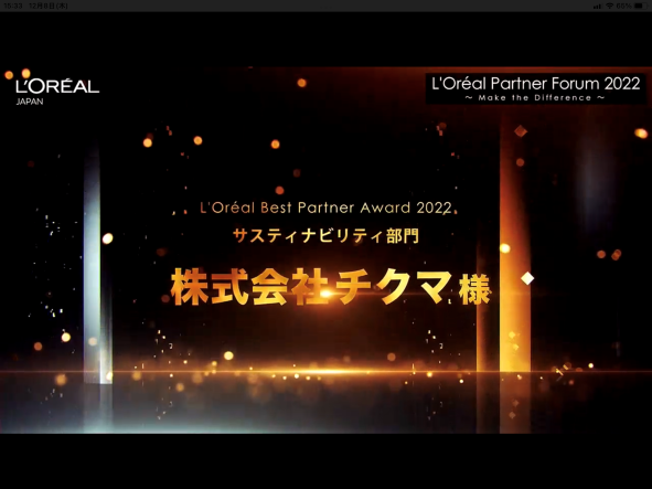 ロレアル パートナー フォーラム 2022 Best Partner Award(サステナビリティ部門)の受賞