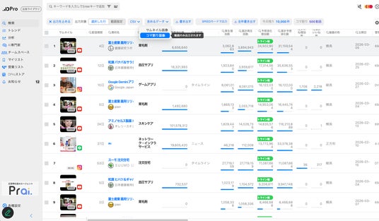 ・再生増加数や推定消化額から「売れている広告」を見つけるランキング・分析機能