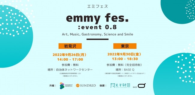 100個の新産業の共創を目指す「新産業アクセラレーター」SUNDRED株式会社(所在地:東京都渋谷区、代表取締役:留目 真伸、以下:SUNDRED)は、北海道大学COI&NEXTと共同で、9月26日(月)に北海道岩見沢市、9月30日(金)に東京都千代田区で未来志向の対話型イベント「emmy fes. : event 0.8」(以下、エミフェス0.8)を開催します。