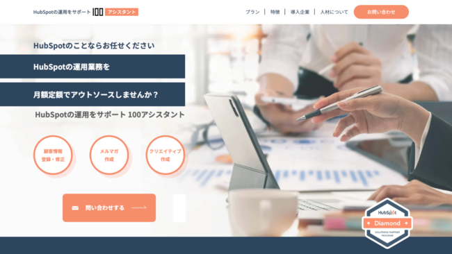 HubSpot ダイヤモンドパートナーの株式会社100(ハンドレッド)は、HubSpot運用業務に特化したオンライン代行サービス「100アシスタント」を4月10日(月)に提供開始いたしました。
