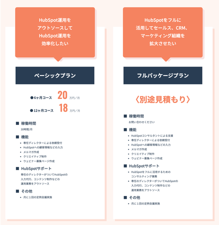 本サービスを活用する企業様にとっては、自社でHubSpotを理解した人材を採用・教育することなく、安価かつ必要な期間に応じて運用チームを作ることができます。