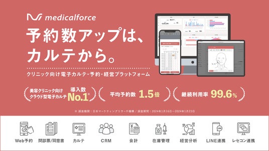 メディカルフォースでは、美容クリニックの業務と経営を一元管理できるオールインワンSaaS「medicalforce」の導入院数が2024年4月現在で400院を突破し、導入クリニックの売上UPと業務効率化、マーケティング支援に伴走してきました。その結果、売上が伸び続ける全国の美容クリニックの経営データ、マーケティングデータに加えて各クリニックの経営ノウハウが蓄積され続けています。