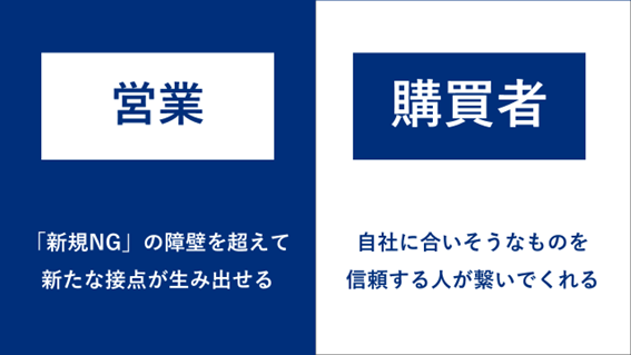 これまで「新規営業だから」「取引がないから」という理由で双方にとっての機会損失となっていた商談機会の創出に挑戦します。