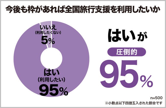 今後も枠があれば全国旅行支援を利用したいか聞いたところ、実に95%の人が「利用したい」と答えています。