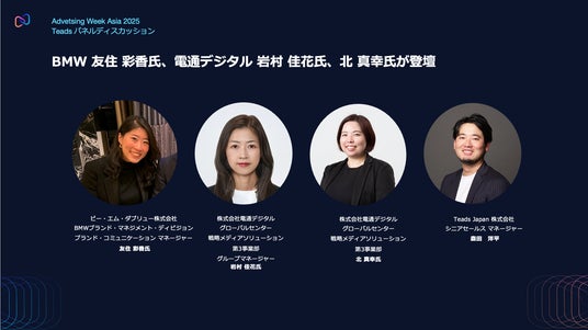 Teadsは、シェラトン都ホテル東京で開催される「Advertising Week Asia(アドバタイジング・ウィーク・アジア)2025」にて急成長するCTV市場におけるブランド体験最前線をテーマに、BMW × 電通デジタル × Teadsによるパネルディスカッションを開催いたします。