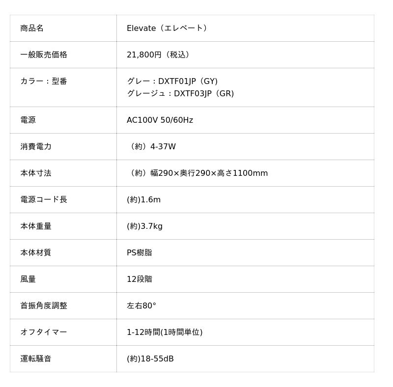 スリムなデザインで置き場に困らない大風量タワーファン「Elevate(エレベート)」