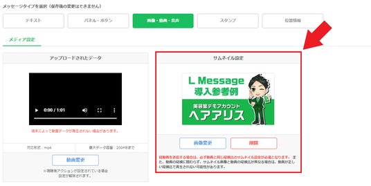ミショナLINE公式アカウント拡張ツール「L Message(エルメッセージ)」は、メッセージ配信・ステップ配信・テンプレートから動画を送信可能。動画再生後にテキスト送信やタグ付け等アクション設定もできます。