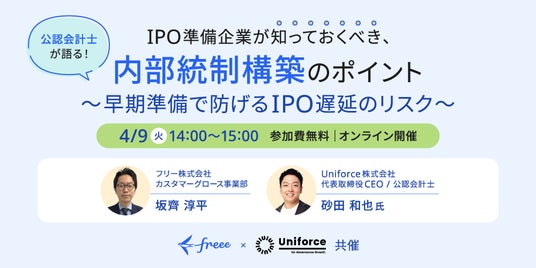 早期準備で防げるIPO遅延のリスク [ freee x Uniforce共催オンラインセミナー ] 2024年4月9日(火)14時~15時