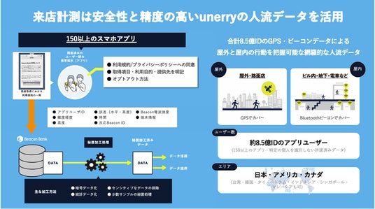 ■ unerryについてリアル行動データプラットフォーム「Beacon Bank(https://www.beaconbank.jp/)」を運営する2015年創業のデータカンパニーです。GPSおよびビーコン技術を活用し、約150のスマートフォンアプリから取得する約8.5億ID(うち国内約2.4億ID)の屋内外の人流ビッグデータをAIで解析。「心地よい未来を、データとつくる。」というミッションを掲げ、OMOマーケティング支援や、スマートシティの実現に向けた事業等を展開しています。