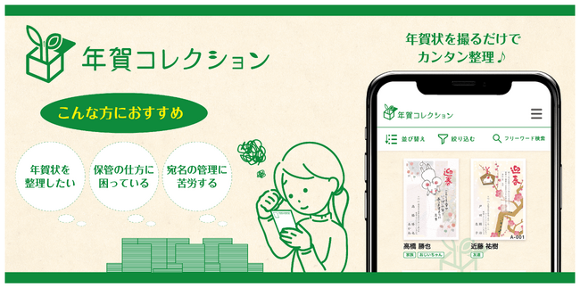 フタバではおしゃれで個性的な年賀状だけでなく、年賀状の管理に便利な「年賀コレクション」というアプリも手掛けています。
