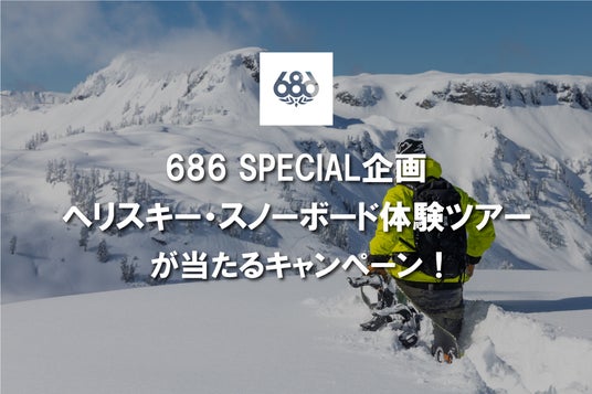 『686』2025-2026年モデルを税込68,600円以上ご購入いただいたお客様の中から、抽選で1名様にヘリコプターで行くスノーボード体験ツアーをプレゼント