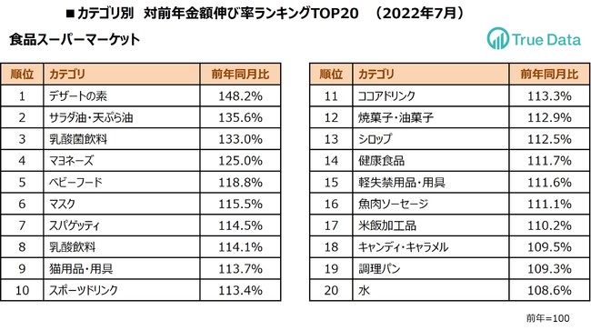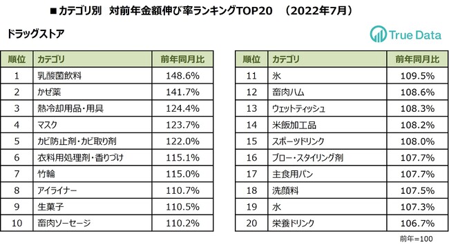~ドラッグストア、食品スーパーマーケット 2022年7月の対前年伸び率TOP20カテゴリを発表 ~