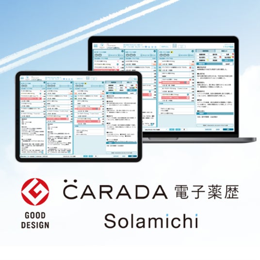 【『CARADA 電子薬歴 Solamichi』について】 『CARADA 電子薬歴 Solamichi』は、患者の症状や薬剤の処方内容、指導履歴などを記録できるクラウド型の電子薬歴システムです。薬剤師の業務を支援するサービスとして、処方に際して飲み合わせの危険性が高い薬剤のチェック機能や、患者への服薬指導内容のナビゲーション機能などを搭載しています。2024年調剤報酬改定でもさらに重要視されている対人業務の強化、かかりつけ化の促進に役立つ「服薬フォロー」機能やトレーシングレポートの作成サポート機能も備えています。