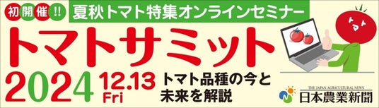 日本農業新聞(本社:東京都台東区、代表取締役社長:田宮和史郎)は12月13日、野菜の中で産出額が最も多いトマトの品種に関するオンラインセミナー、「トマトサミット」を初めて開催します。