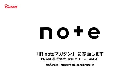https://note.com/branu_ir■「IR noteマガジン」とはIR noteマガジンは、企業の枠を超えた共創により投資家のみなさまにIR記事を届ける新しい試みです。投資家の方は、IR noteマガジンをフォローすることでIR noteマガジン参加企業のIR記事の掲載通知を受け取る事ができ、いち早くIR記事を読むことができるようになります。これにより、IR noteマガジン参加企業は、他の企業に関心を持つ投資家を含めて、より多くの投資家にIR記事を届ける事が可能になります。