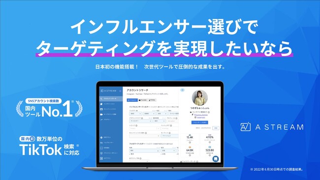 株式会社A(読み:エース、代表取締役CEO 中嶋泰、以下「当社」)は、インフルエンサーマーケティングを行う代理店様やメーカー様を対象としたインフルエンサーデータベース「A stream(エーストリーム)」のサービスの提供を行っています。