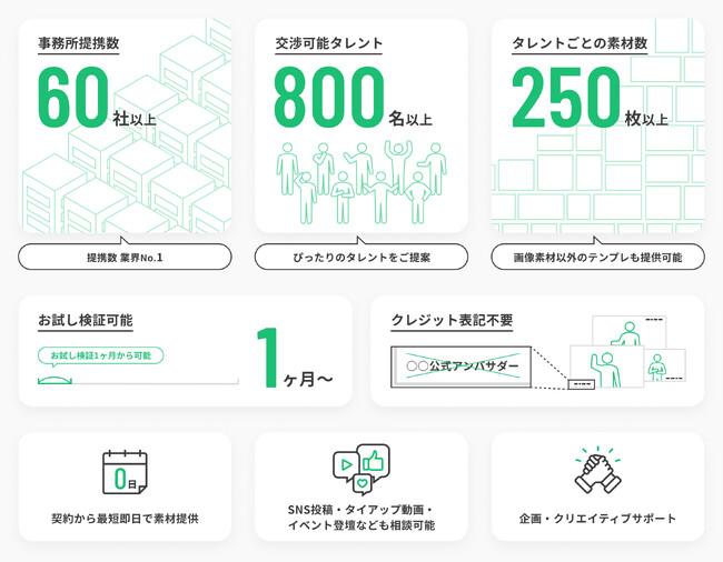 ~4万点以上の有名タレント宣材素材が安価に最短1ヶ月から利用可能!クリエイティブコンサル付で認知獲得・売上拡大をサポート~