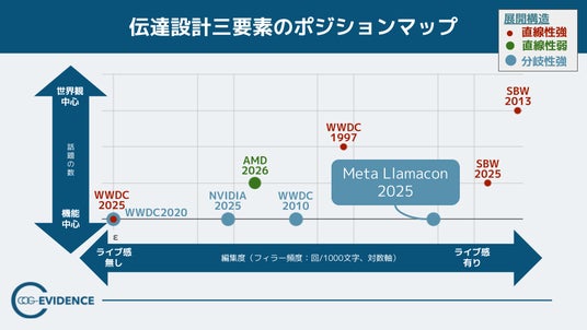 図1:MetaのLlamaCon 2025を加えた伝達設計三要素のポジションマップ