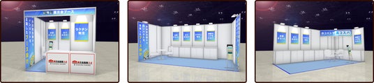 制作実績2000件以上のノウハウを活かし、来場者心理をシミュレーションし尽くし、小間位置の優劣に左右されることなく集客可能な、有効名刺の獲得が大いに期待できるパッケージ型ブース装飾です。