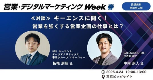 「達成の喜びをあたり前に」をビジョンに掲げるSALESCORE株式会社(本社:東京都渋谷区、代表取締役:中内崇人、以下:当社)は、2025年4月23日(水)~25日(金)に東京ビッグサイトにて開催される「営業・デジタルマーケティングWeek 2025 春」に出展いたします。