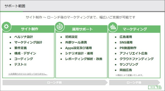 デジタルマーケティングの知識が豊富な「デジマ女子」が、統合コマースプラットフォーム「ecforce」を導入する企業に対して、ECサイトの制作から初期設定や運用、マーケティングまでを伴走型で支援することで、ecforce導入企業のリソース不足やノウハウ不足を解消し、業務効率化やECサイトの売上の向上を実現します。