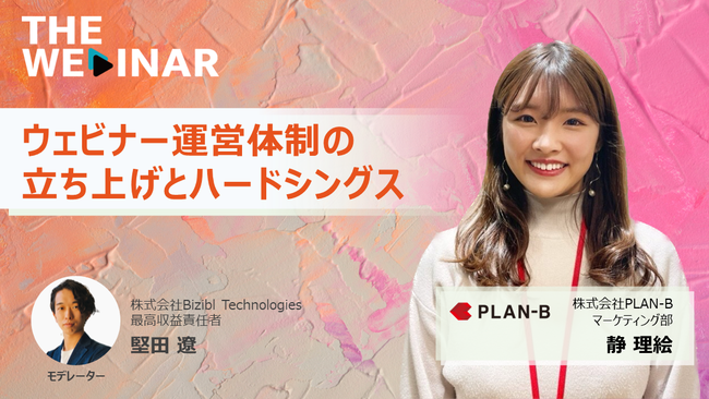 第5弾企画は、株式会社PLAN-B新規事業統括本部マーケティング部の静理絵氏をゲストに迎え、「ウェビナー運営体制の立ち上げとハードシングス」というテーマでお届けします。