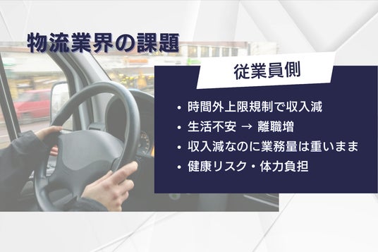 - 物流業界では、2024年問題により時間外労働の上限規制が本格化し、
